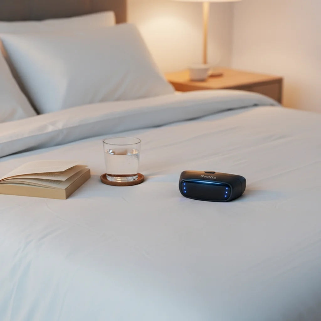 Revitta SleepClear uses gentle neurostimulation to stop snoring in just 10 minutes before bed, giving your loved ones (and you!) truly undisturbed, deep sleep. Imagine waking up refreshed, every single day.